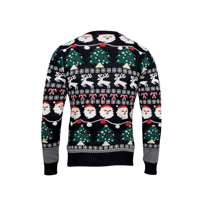 Pull de Noël en acrylique avec 10 lumières LED . Taille : S/M. Montrez-vous au travail ou au dîner de Noël en famille avec style grâce à ce pull festif. Compartiment à piles amovible. Inclus 2 piles CR2032.