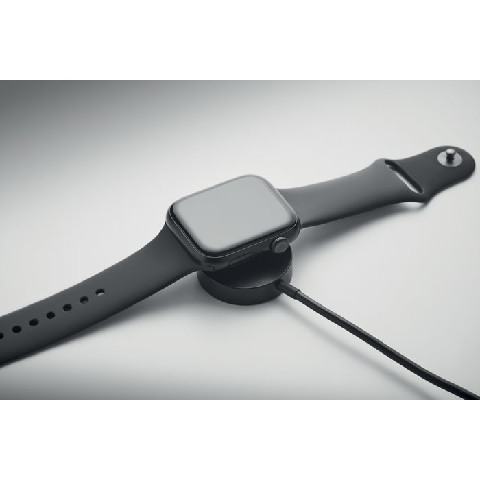 Porte-clés et câbles de charge 4 en 1 60W avec détails en bambou. Entrée : 2-en-1 Type-C <(>&<)> Type-A. Sortie : Chargement des montres (Samsung® et Apple®), type-C et micro-B (2 en 1).