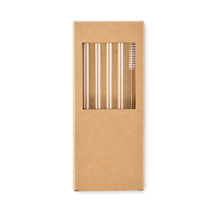 Set de 4 pailles réutilisables en verre borosilicaté avec 1 brosse de nettoyage.