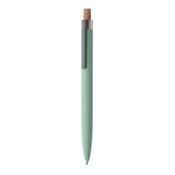 Stylo à bille en aluminium recyclé avec bouton poussoir en bambou de couleur assortie et clip en métal assorti. Encre bleue.