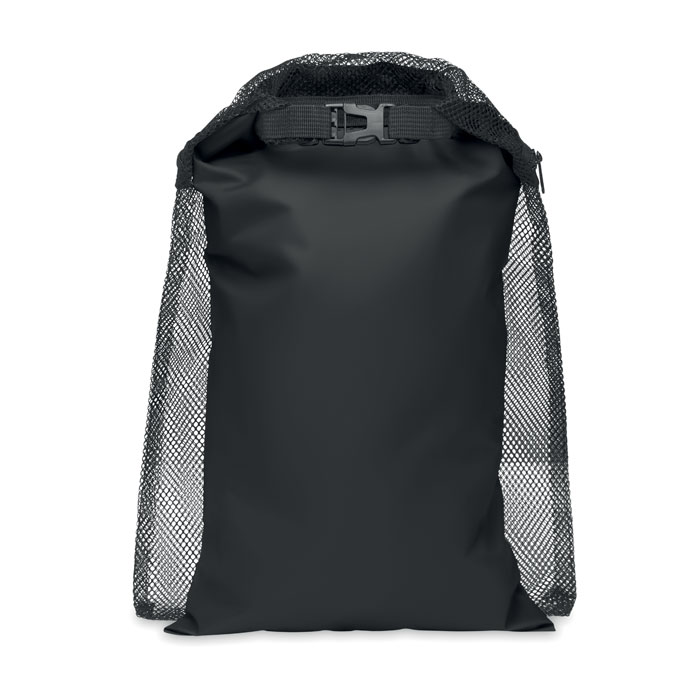 Sac imperméable en RPET 210D avec fermeture éclair et filet en RPET. Capacité : 6L.