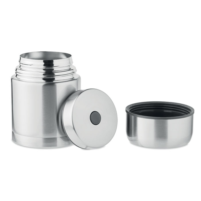 Pot de conservation en acier inoxydable à double paroi avec un bouchon à vis. Capacité : 800 ml.