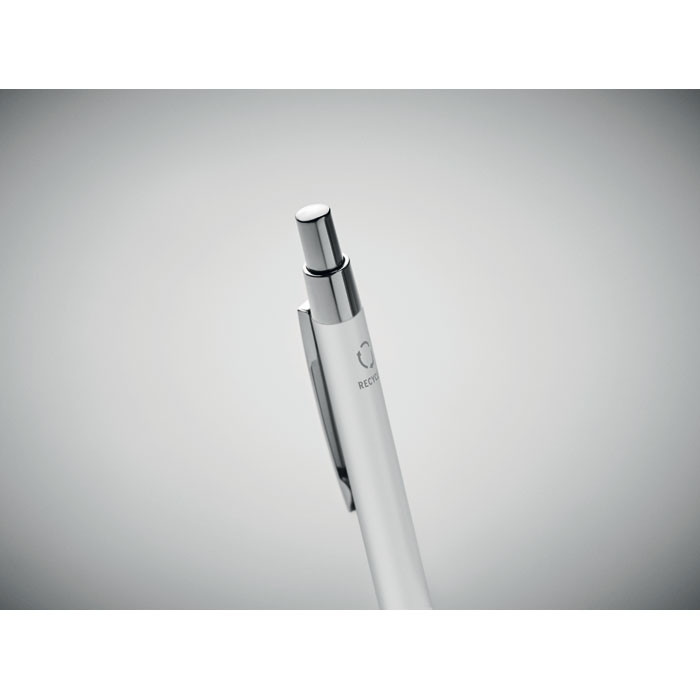 Stylo bille à bouton poussoir en aluminium recyclé. Encre bleue.