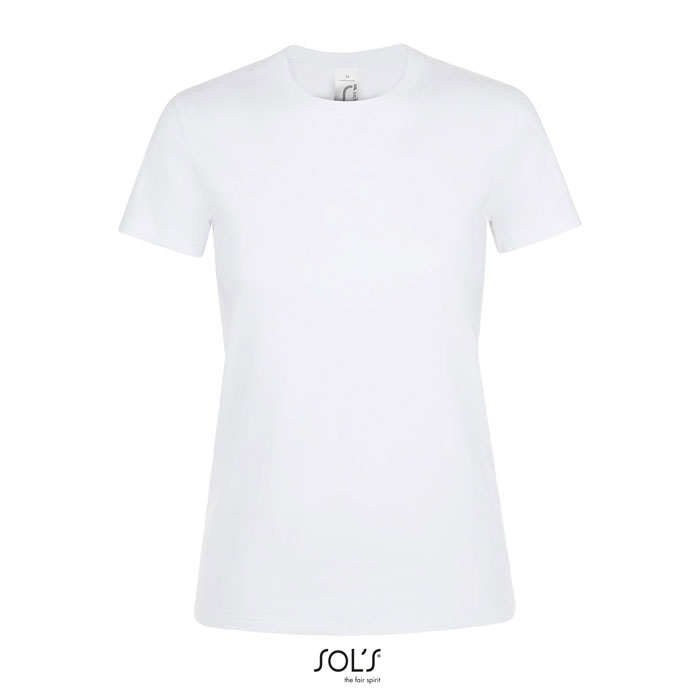 SOL'S REGENT WOMEN, TEE-SHIRT FEMME COL ROND, 100% coton semi-peigné Ringspun Jersey 150, Bande de propreté au col, Col avec bord côte, Manches courtes, Coupe cintrée, Coupé cousu, (1) Blanc chiné : 98 % coton / 2 % viscose, (2) Gris chiné : 85 % coton / 15 % viscose.Pour la correspondance des tailles, veuillez vous référer au size chart dans la documentation produit.