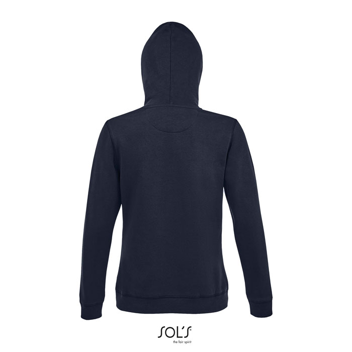 SOL'S SPENCER WOMEN, SWEAT-SHIRT FEMME À CAPUCHE, 80% coton Ringspun - 20% polyester, Intérieur gratté, Extérieur 100% coton Molleton 280 technologie LSF (low shrinkage fabric), Poche kangourou, Coupé cousu, Capuche doublée avec cordon de serrage, Poignets et bas en bord côte 2x2, Demi-lune à l'intérieur du col, Bande de propreté intérieur col, (1) Anthracite chiné : 60 % coton / 40 % polyester, (2) Gris chiné : 75 % coton / 20 % polyester / 5 % viscose, (3) Blanc chiné : 79 % coton / 20 % polyester / 1 % viscose, (4) Oxblood chiné : 60 % coton / 40 % polyester, (5) Denim chiné : 60 % coton / 40 % polyester.Pour la correspondance des tailles, veuillez vous référer au size chart dans la documentation produit.