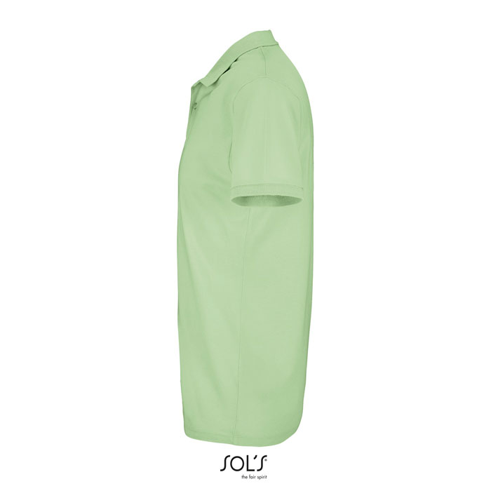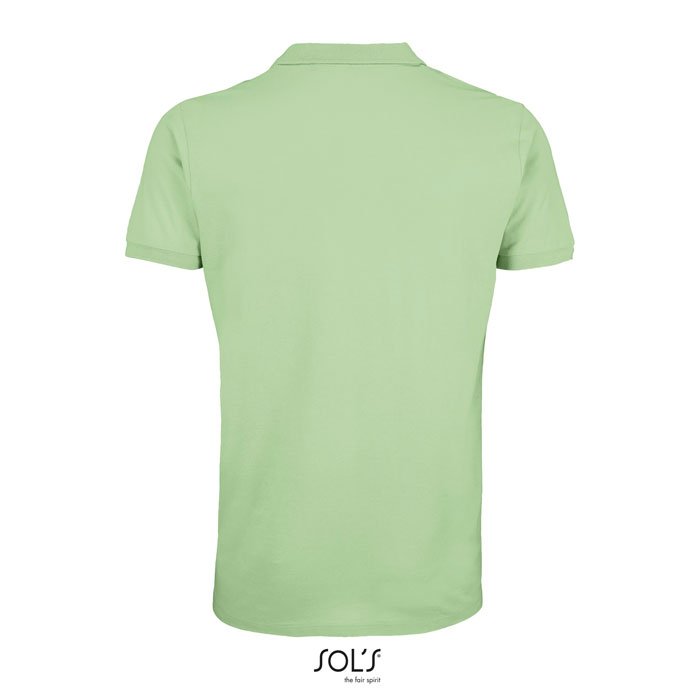 SOL'S PLANET MEN, polo homme, 100% coton issu de l'agriculture biologique maille piquée 170, col en côte, bande de propreté au col, patte boutonnée renforcée, manches courtes, patte 2 boutons ton sur ton, bas droit, coupé cousu, bouton de rechange sur couture intérieure côté, (1) gris chiné : 85 % coton bio chart dans la documentation produit.