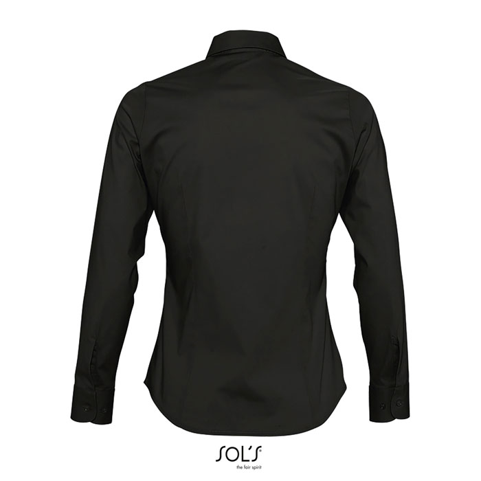 SOL'S EDEN chemise femme 140g. Réalisée dans un coton élasthanne et avec sa coupe cintrée, elle apporte une tenue et un confort. Produit très tendance. Coupe cintrée. Manches longues. Col à bouton unique. Poignets 2 boutons ajustables et patte capucin. Patte avec 7 boutons ton sur ton. Pinces devant et dos. Fabric details: 97% coton - 3% élasthanne. OEKO-TEX®. Only Sold with Print.