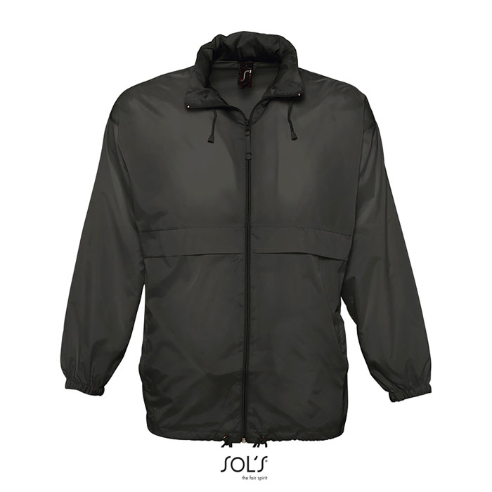 SOL'S SURF, coupe-vent unisexe déperlant, 100% polyamide polyamide 210t, ouverture par zip, capuche et cordon de serrage pliés dans le col, 2 poches extérieures zippées, système de pliage avec élastiques se nouant à la taille, poignets avec élastique, œillets d’aération.pour la correspondance des tailles, veuillez vous référer au size chart dans la documentation produit.